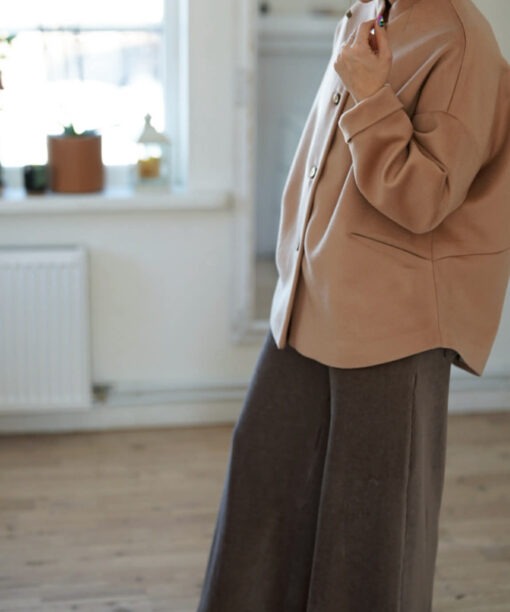 Rudos spalvos veliūrinės platėjančios kelnės