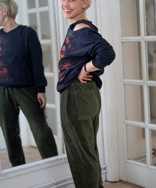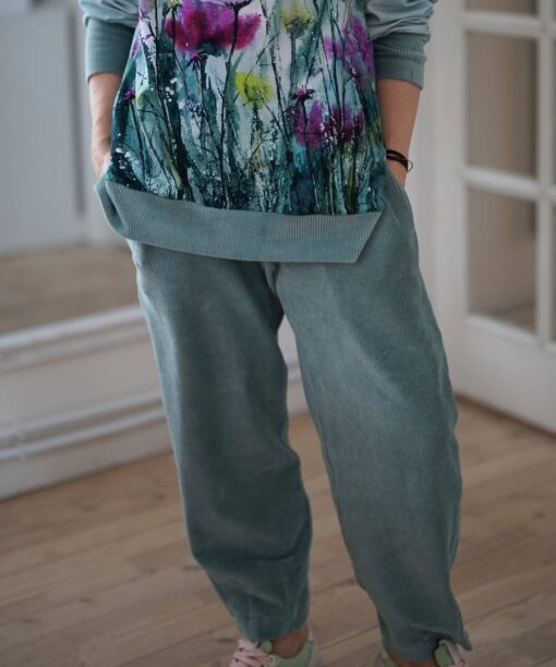 Šalavijų spalvos veliūrinės banankinės kelnės