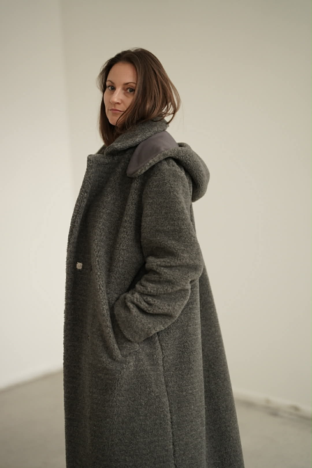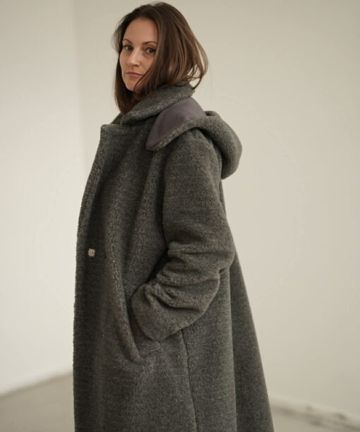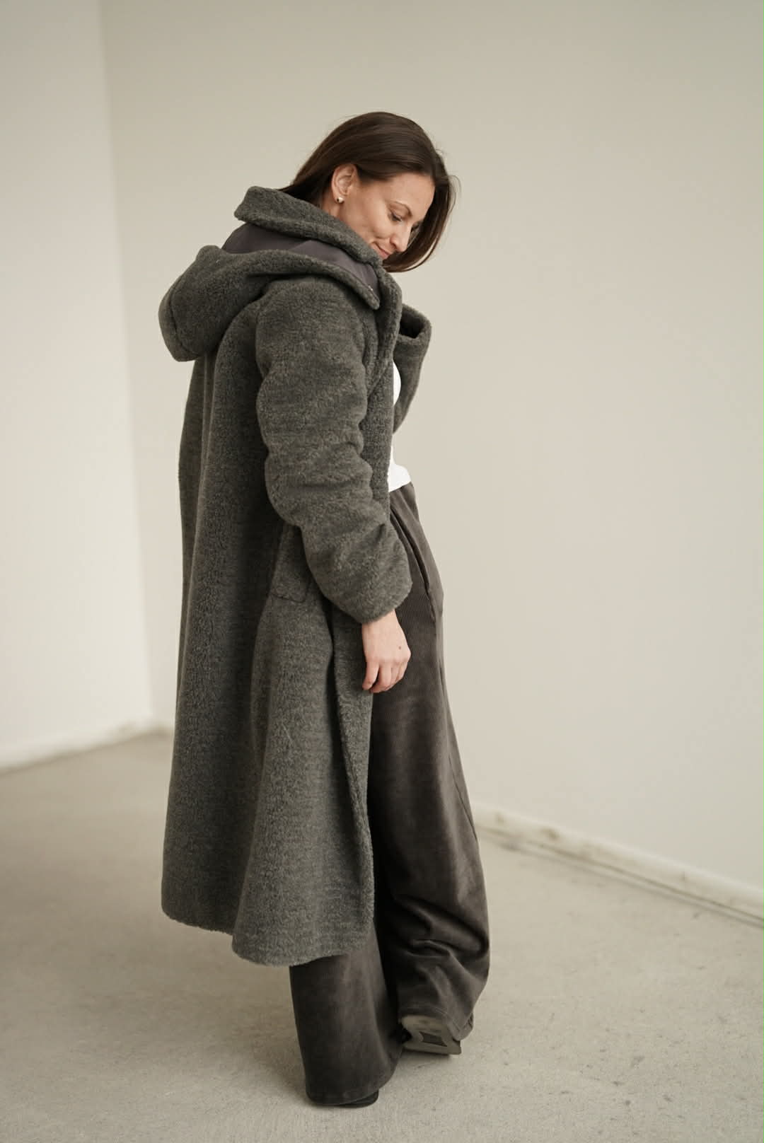 Nuostabaus jaukumo, šilumos merino ilgas paltas. Turi kišenes, galima rinktis su kapišonu, arba be jo. Yra šiek tiek į didesnę pusę. Diržas įeina į kainą.