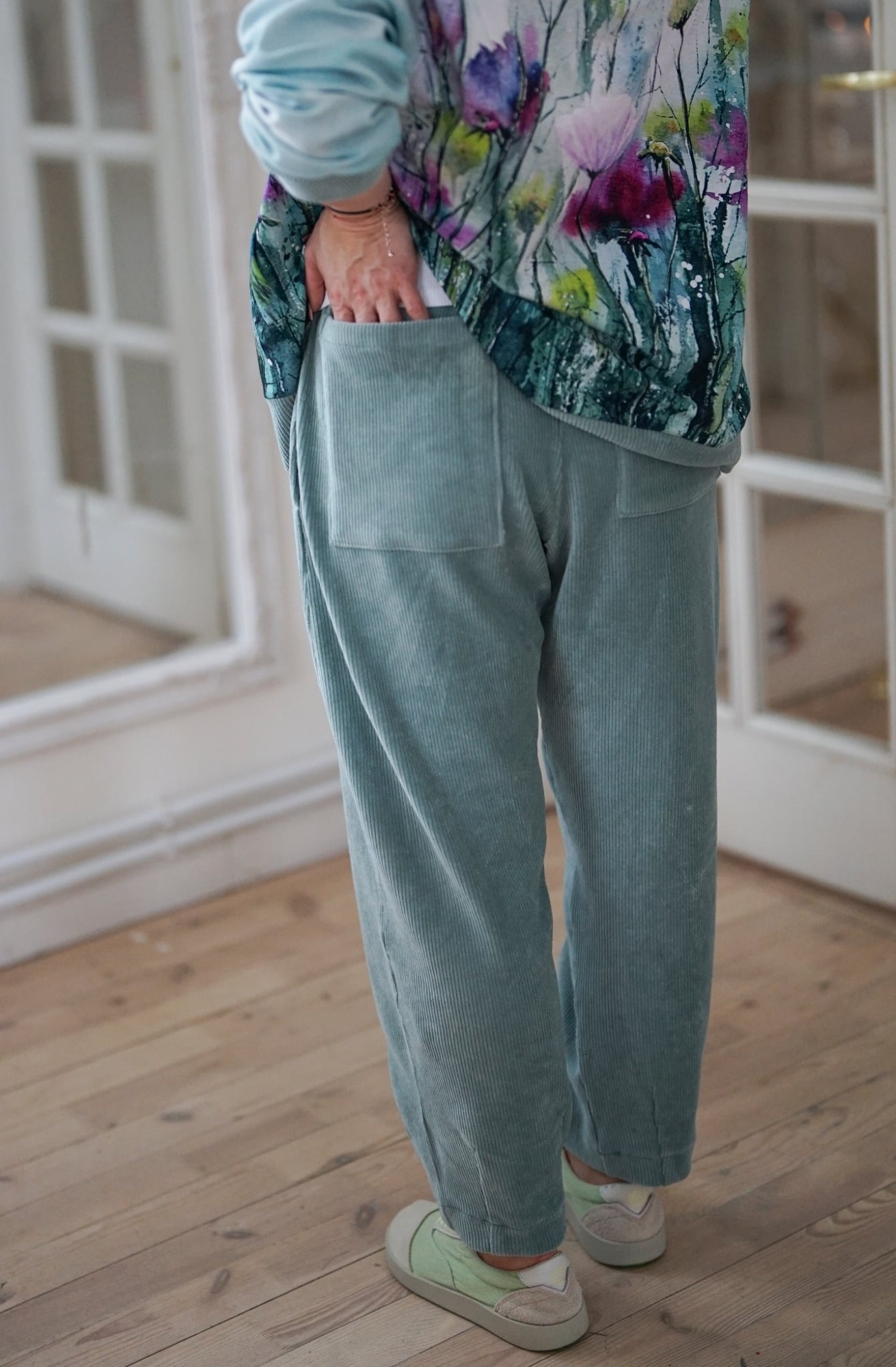Pagaliau dienos šviesą išvydo mūsų antros kelnės – išskirtinės, patogios ir laisvo stiliaus veliūrinės kelnės. Galima rinktis iš dviejų ilgių 91 ir 101 cm. Kelnės yra laisvo stiliaus, plačios, nevaržančios. Turi kišenes gale ir šonuose. Liemuo su tampria guma. Atkreipkite dėmesį, kad veliūras dar gerokai tempiasi ir jos yra į didesnę pusę, renkanti atkreipkite dėmesį į dydžių lentelę.