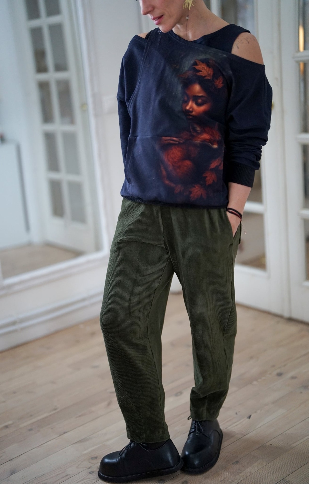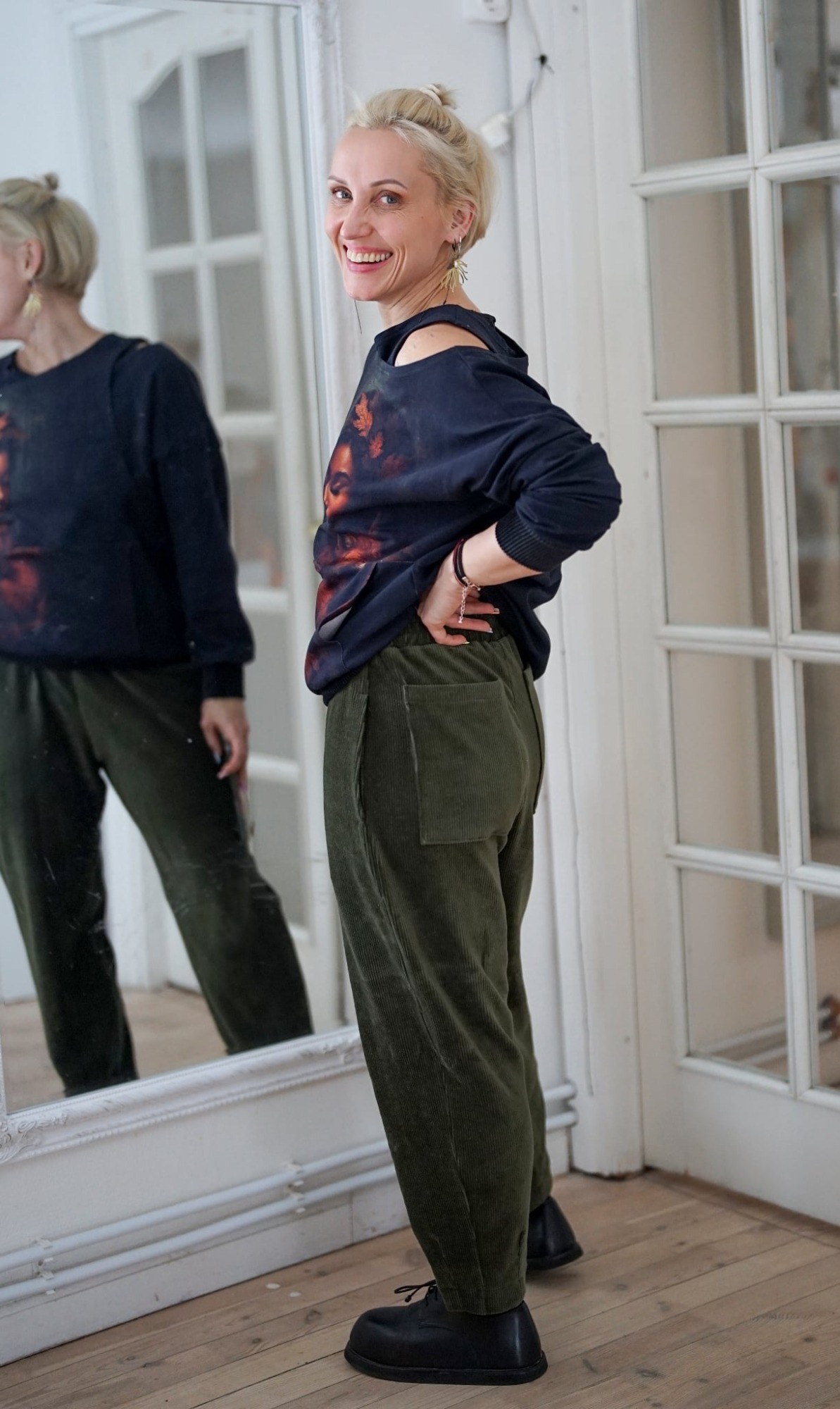 Pagaliau dienos šviesą išvydo mūsų antros kelnės – išskirtinės, patogios ir laisvo stiliaus veliūrinės kelnės. Galima rinktis iš dviejų ilgių 91 ir 101 cm. Kelnės yra laisvo stiliaus, plačios, nevaržančios. Turi kišenes gale ir šonuose. Liemuo su tampria guma. Atkreipkite dėmesį, kad veliūras dar gerokai tempiasi ir jos yra į didesnę pusę, renkanti atkreipkite dėmesį į dydžių lentelę.